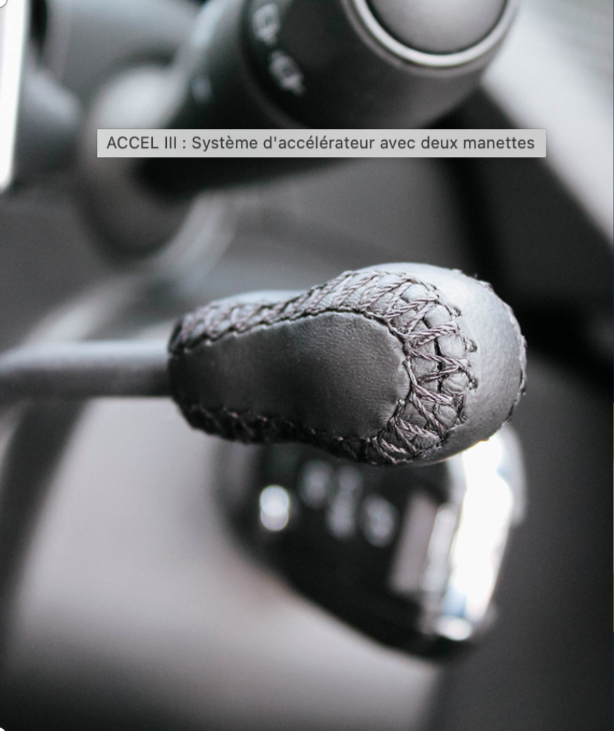 En remplacement de la pédale d'accélérateur pied droit, l'équipement offre une solution alternative d'accélération au volant.